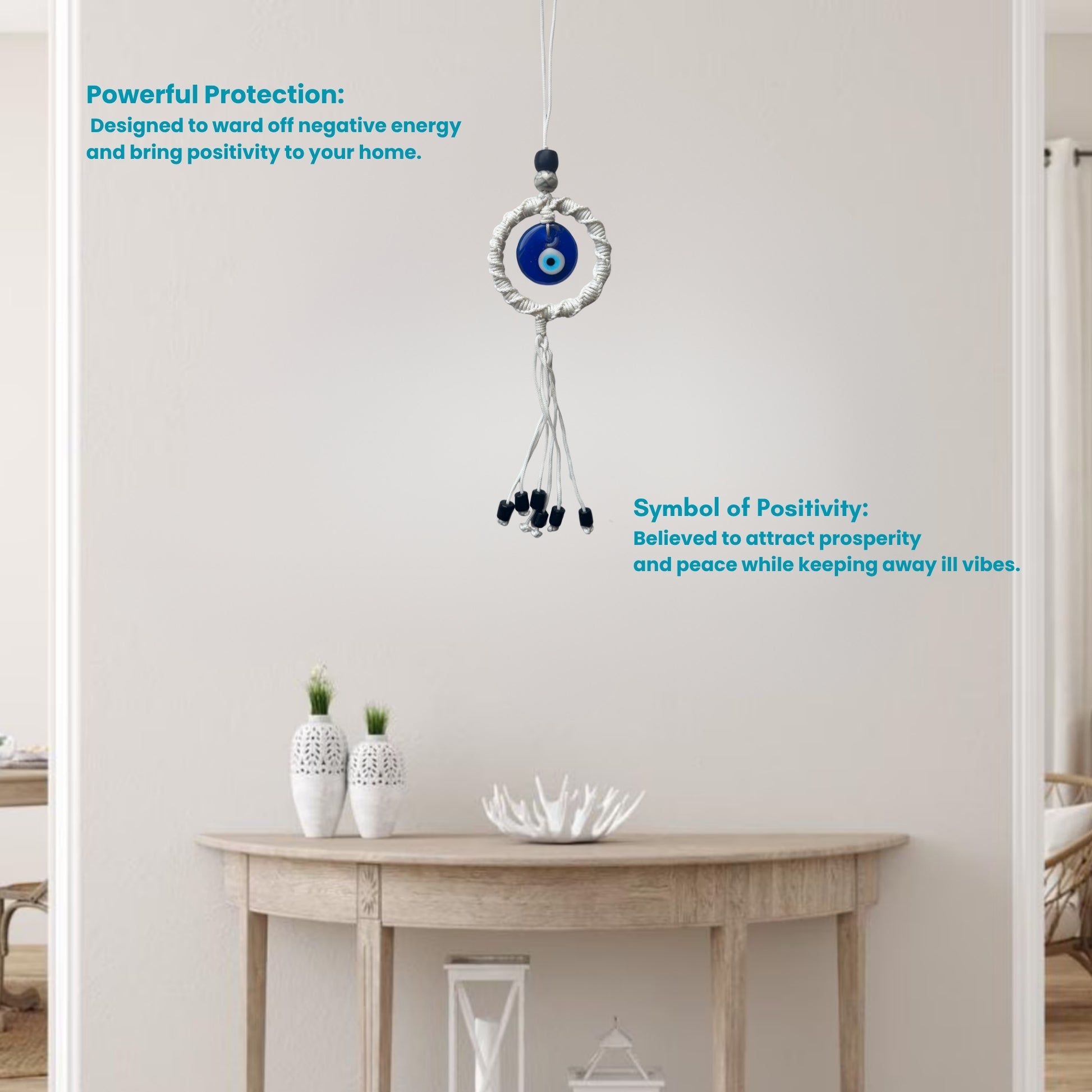 Add a touch of charm and protection to your home with our Wall Hanging Macrame Evil Eye featuring the iconic evil eye symbol, believed to ward off negative energy and bring good luck. These are made from high-quality materials, ensuring durability and Handmade Craftsmanship – Woven with 100% cotton macramé, accented with blue glass beads. Boho Chic Design – A stylish addition to your living room, bedroom, office, or entryway. Lightweight & Easy to Hang – Fits effortlessly into any home style.This set is also an excellent gift for friends and family who appreciate meaningful decor and spiritual symbols. Elevate your space with our Hanging Evil Eye, combining style and tradition in one beautiful package."
