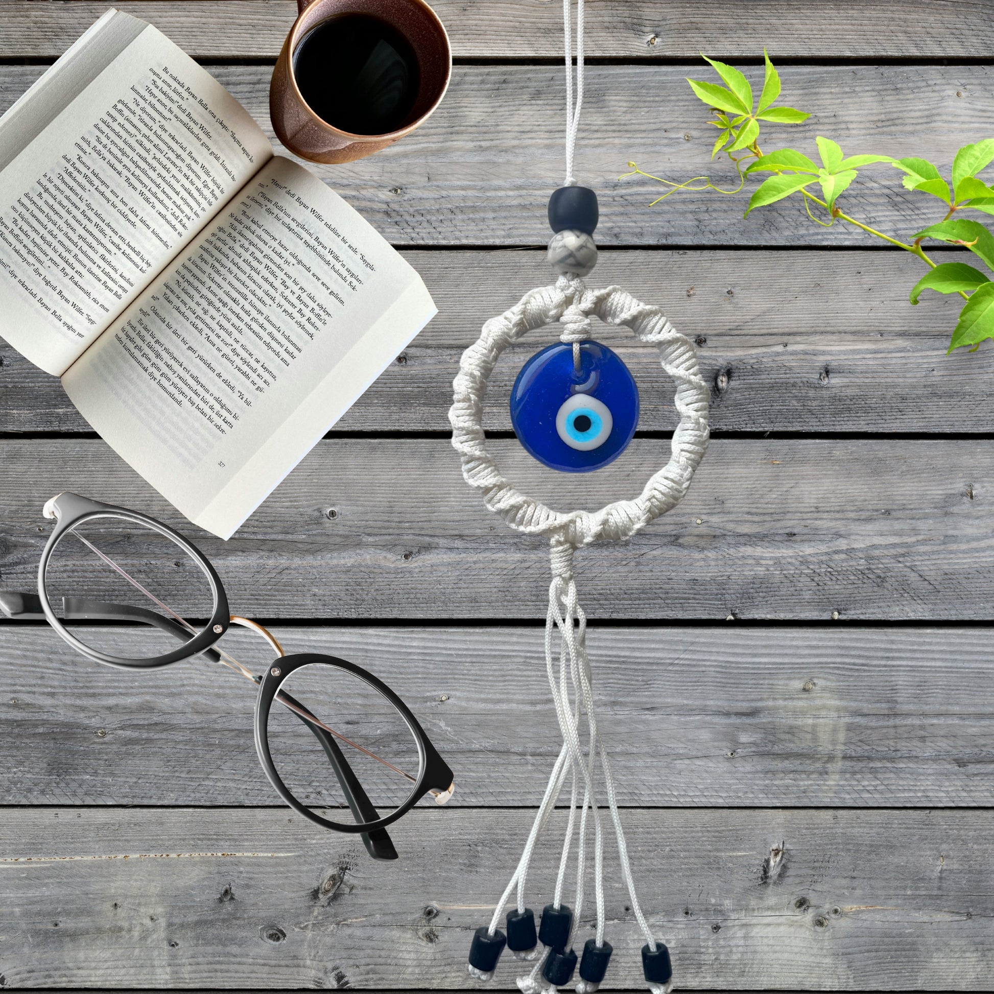 Handmade Macrame Evil Eye Wall Hanging: Boho Home Protection Amulet