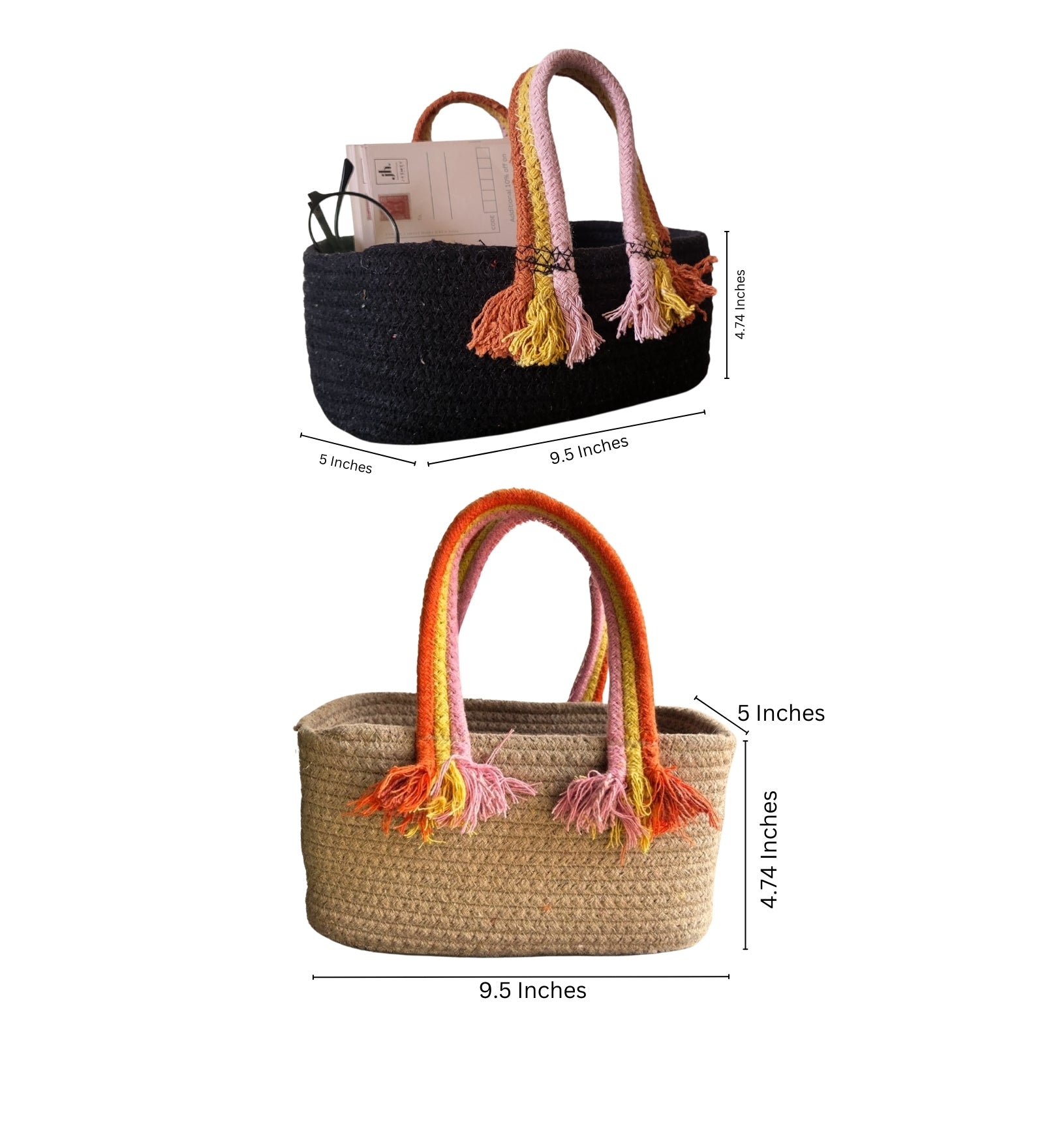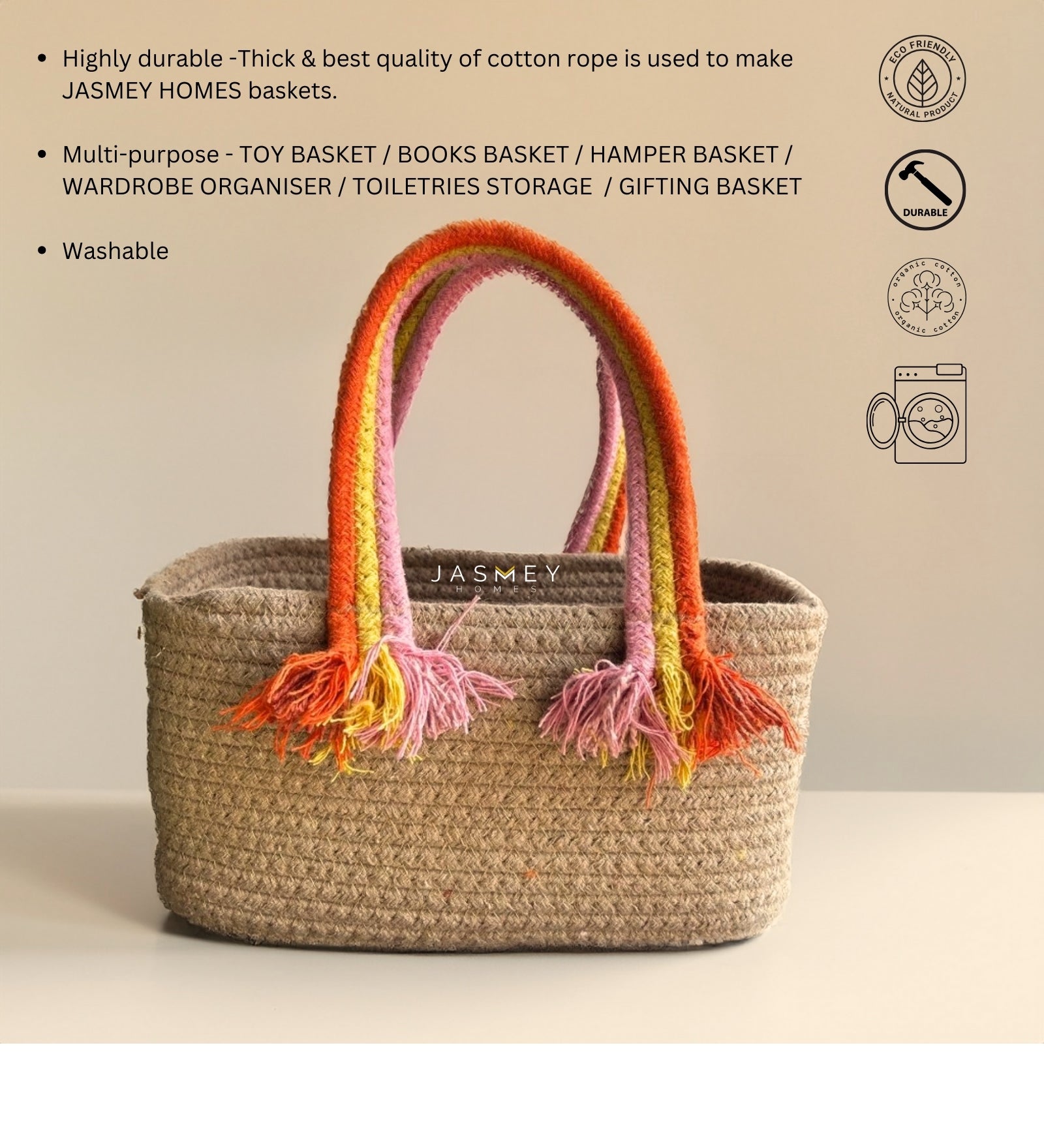 Modern storage solution for organising your accessories, toiletries, books, medicines, and more. Keep this baskets in the bed side table to keep your favourite book, pen, note book, glasses on it.