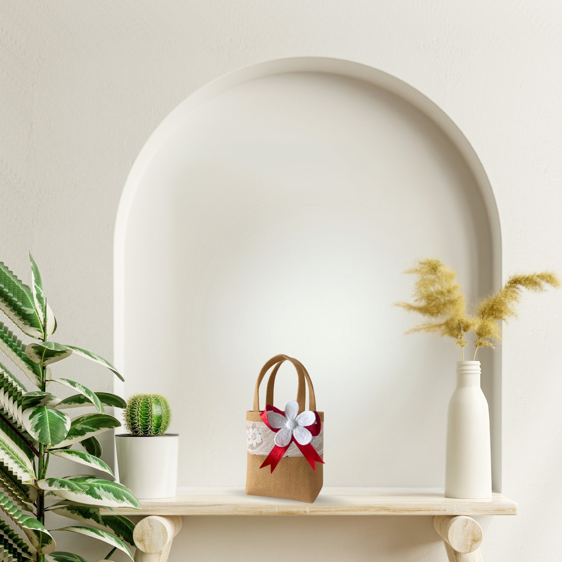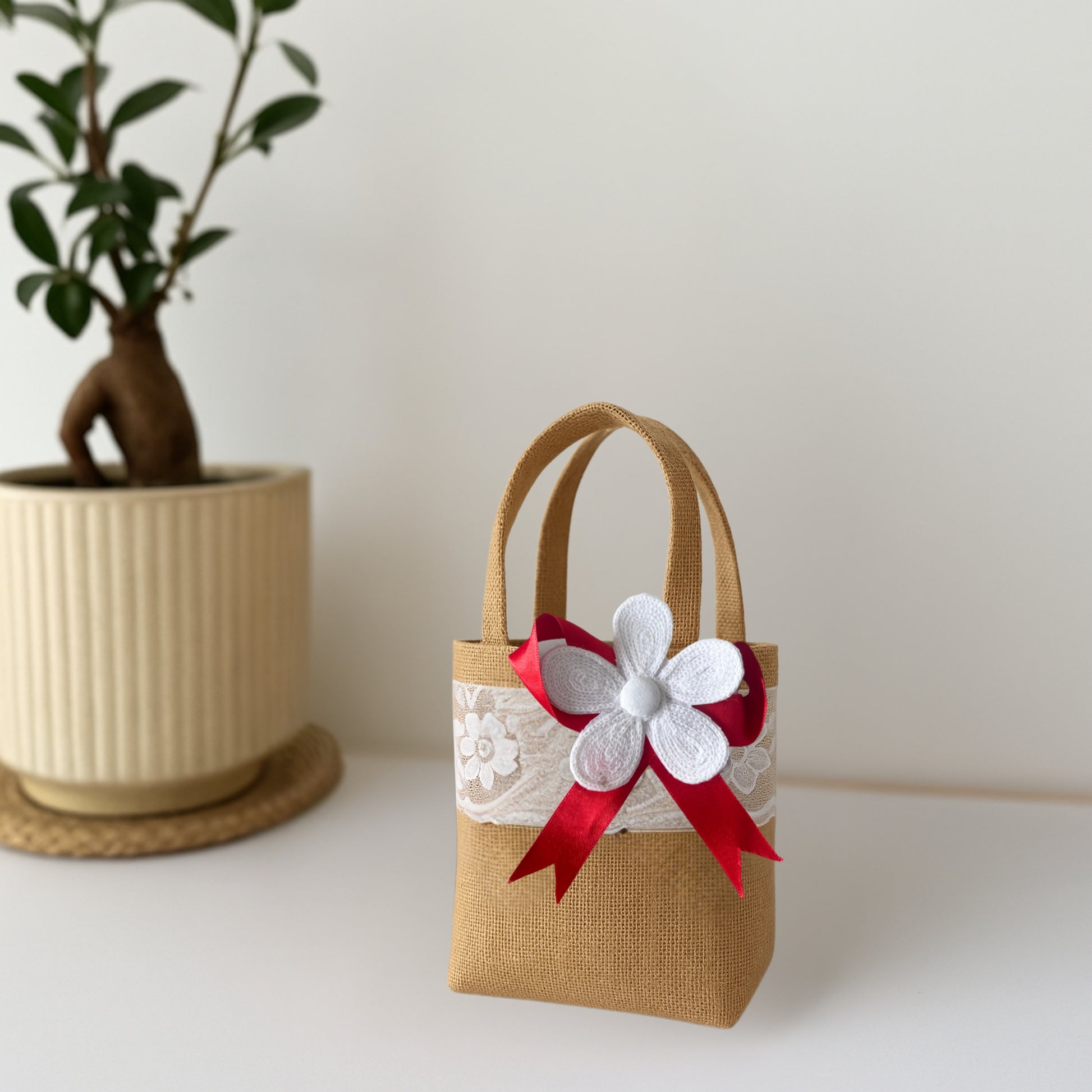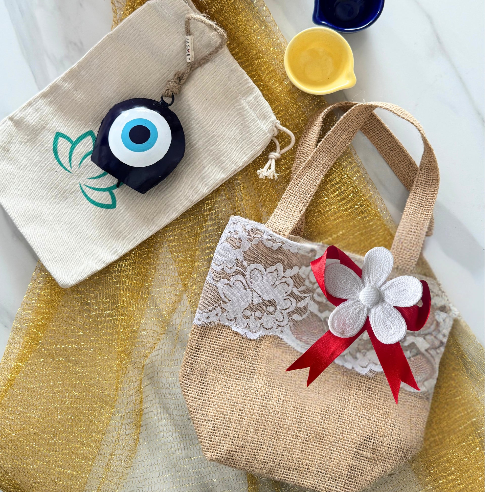 Elegant and eco-friendly, this set of 3 handcrafted burlap gift baskets is adorned with delicate lace and a fabric flower. They are perfect for festive gifting, wedding favors, or party giveaways. Ideal for Diwali, Christmas, or any special celebration, they are durable, reusable, and charmingly unique.
